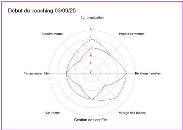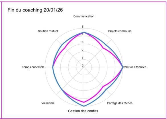 Exemple d'auto-évaluation par le couple en début et en fin de coaching.